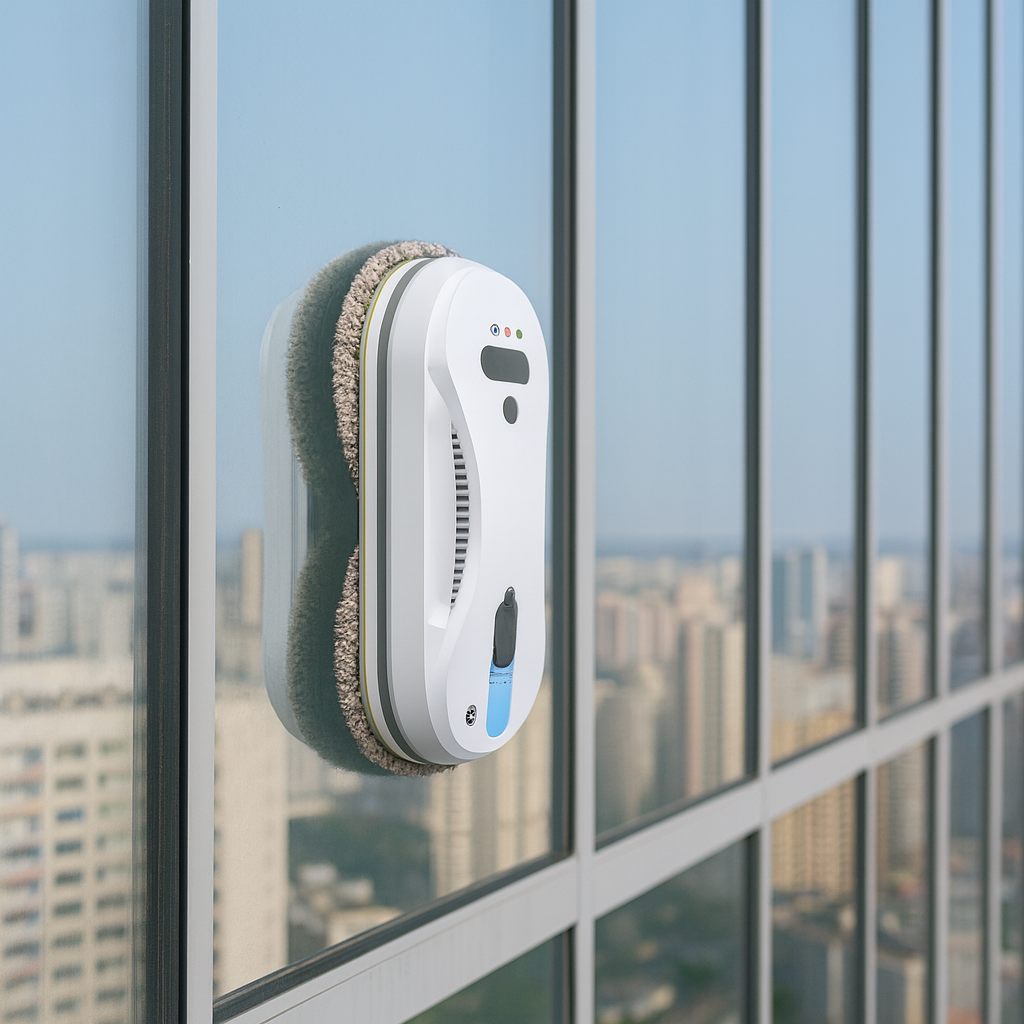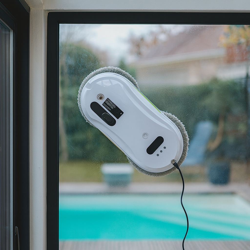 De robot past zich automatisch aan het glas aan, herkent randen en voorkomt vallen met zijn ingebouwde veiligheidstouw en back-up batterij. Zelfs bij een plotselinge stroomonderbreking blijft hij stevig aan het raam bevestigd. Met een compact ontwerp en een fluisterstil geluidsniveau van slechts 65 dB, is hij ideaal voor dagelijks gebruik.